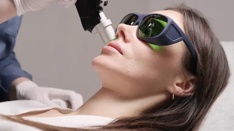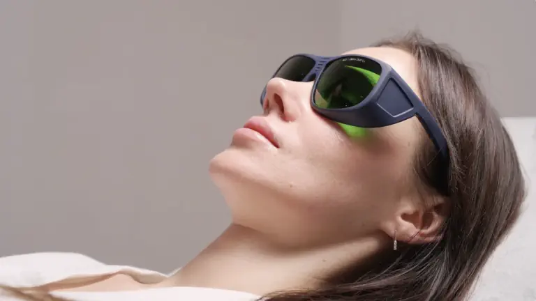 Ihre Spezialistin bereitet die Haut vor, gibt Ihnen eine Schutzbrille und markiert die Behandlungszonen.